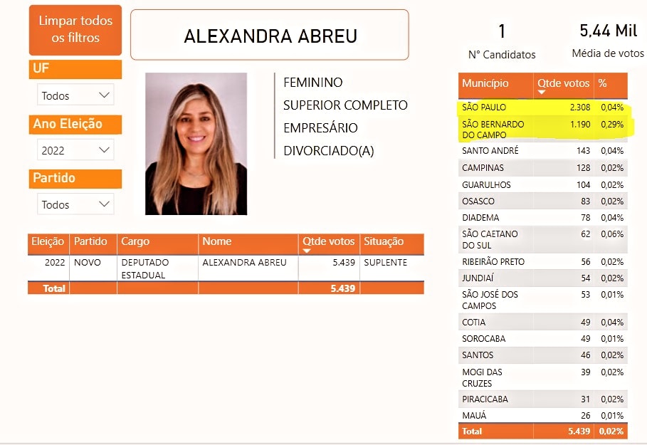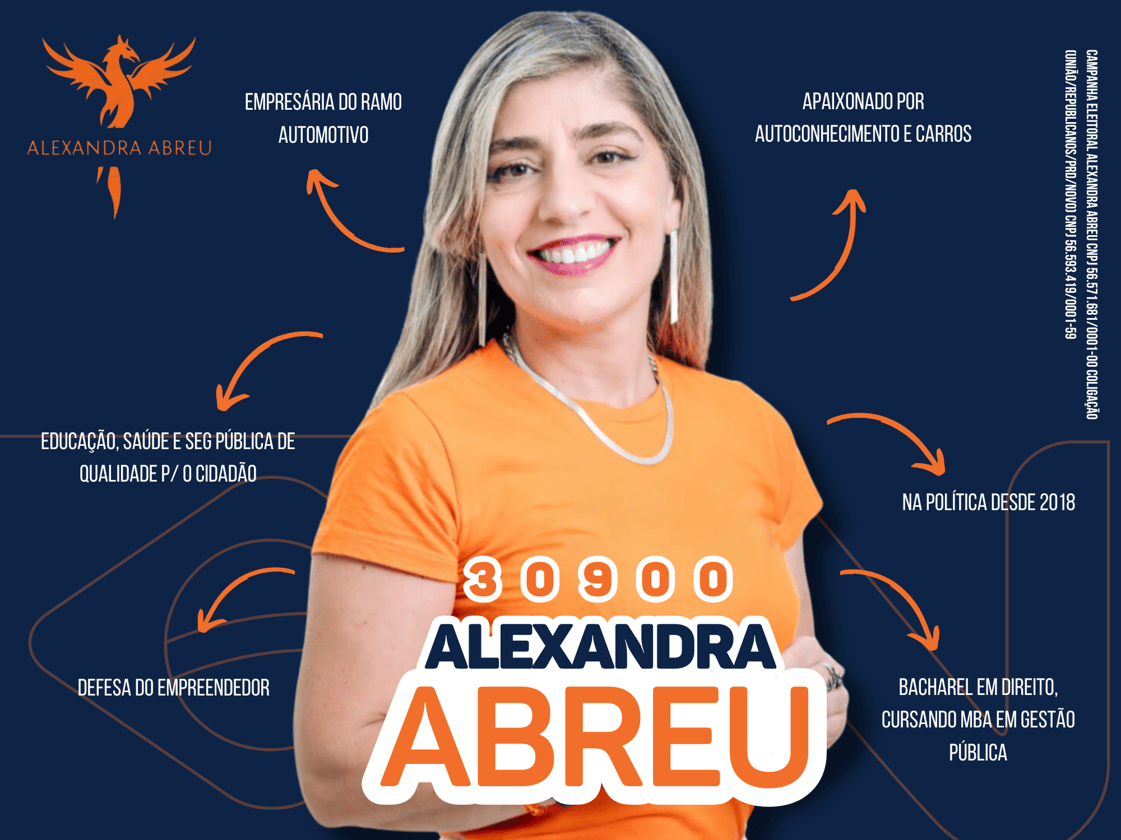 Mesmo depois de perder a casa em uma disputa entre sócios, Alexandra se orgulha do bom caminho seguido por seus quatro filhos. Em 2022, após um longo processo, transformou a adversidade em motivação para lutar contra injustiças. Empresária automotiva, formada em Comércio Exterior e Direito, com MBA em Gestão Pública, ela se candidata a vereadora pelo partido NOVO para lutar pela educação, saúde e segurança pública em São Bernardo do Campo.